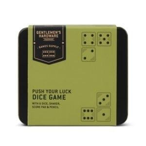Klasyczna gra w kości 'Push your Luck" wydana przez Gentlemen's Hardware w wyróżniającej się estetyce. Ten zestaw opakowany jest w porządne metalowe pudełko i zawiera 6 kości, książeczkę do zapisywania wyników i ołówek. W zestawie: Książeczka zapisywania wyników Ołówek 6 kości do gry Opakowanie