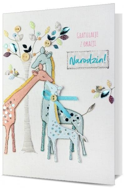 Okolicznościowy karnet B6 z kopertą i życzeniami w środku.