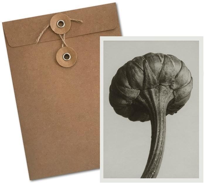 Wyjątkowy karnet retro (bez tekstu) z serii Karl Blossfeldt. W zestawie oryginalna brązowa koperta wiązana na sznurek.