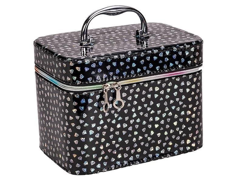 Kuferek L, walizka z lusterkiem, zapinany na zamek; czarny z hologramem, 23x17x15cm