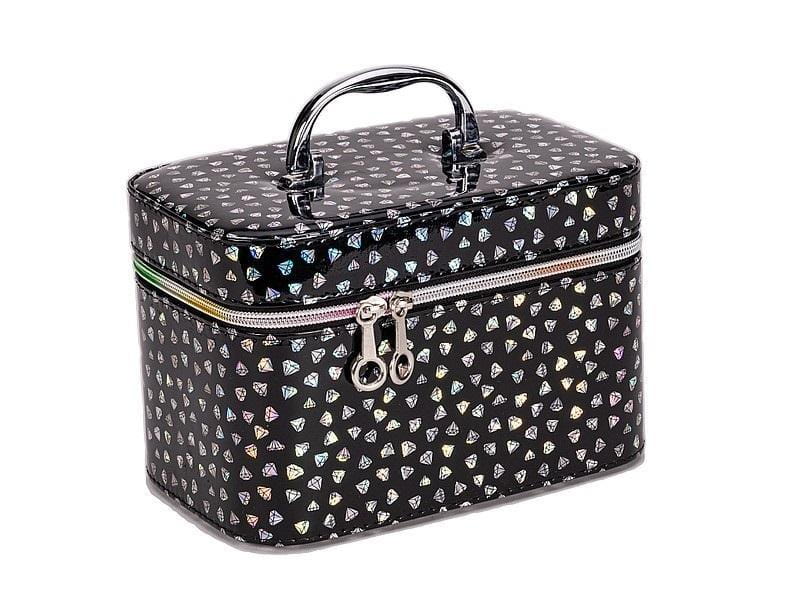 Kuferek M, walizka z lusterkiem, zapinany na zamek; czarny z hologramem, 21x14x13cm