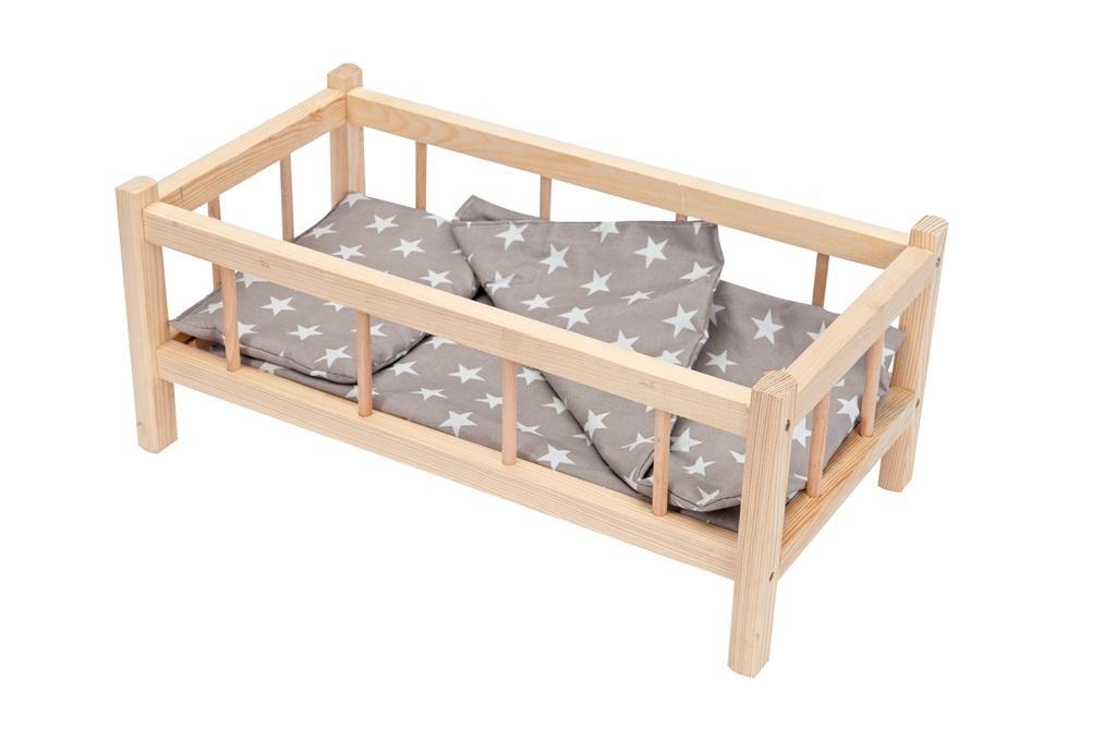 Średniej wielkości łóżeczko przyda się w trakcie wielu domowych zabaw, podczas których dziewczynka będzie mogła wcielić się w rolę opiekuńczej mamy. Łóżeczko wyróżnia się solidną konstrukcją, jest w całości wykonane z ekologicznego drewna. Produkt opiera się na prostym designie, przypomina prawdziwe łóżeczko dla niemowląt. Łóżeczko średnie z pościelą dla dzieci to zabawka, która zauroczy każdą dziewczynkę! W zestawie nie zabrakło niezwykle istotnych elementów - materacyka, prześcieradła, kołderki oraz poduszeczki. Kompletny zestaw pościeli pozwoli dziecku odpowiednio przygotować swoją lalkę do snu. Prześliczne łóżeczko w naturalnym kolorze drewna to trafiony pomysł na upominek dla dziewczynki, której ulubioną zabawą jest opiekowanie się lalką!