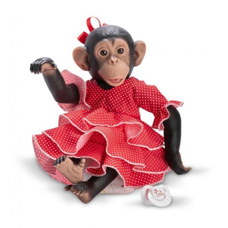 Zwracająca uwagę realistycznym wyglądem, dopracowana w najdrobniejszych szczegółach małpka renomowanej hiszpańskiej marki Asi wykonana została z miękkiego, gładkiego winylu. Zwracają uwagę brązowe oczy o głębokim spojrzeniu. Kończyny można ułożyć dowolnie. Głowa jest również ruchoma, dzięki czemu zabawka może przyjmować różne pozy.
