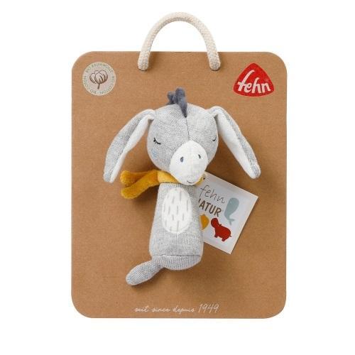 Zabawka do Rączki, Osiołek z kolekcji: Natura 2 Wszystkie zabawki z kolekcji Natura wykonane są w 100% z certyfikowanej bawełny organicznej. Stworzona dla małych rączek, delikatna w dotyku, urocza maskotka Osiołek z kolekcji: Natura 2, szybko zdobędzie serce dziecka. Przyjazny Osiołek radośnie grzechoce, gdy dziecko nim potrząsa. To budzi ciekawość dzieci, pobudza pierwsze ćwiczenia chwytania. Kolorowe tasiemki służą do ciągnięcia i szarpania. Doskonały towarzysz w domu i podczas podróży. Rozwija i pobudza zmysły. Doskonali zdolności motoryczne. Posiada grzechotkę, która wydaje dźwięk przy potrząsaniu. Materiał: 100% bawełna organiczna. Pranie ręczne w temp. 30C. Wymiary produktu: 16,5 cm x 7 cm x 4,5 cm. Wymiary opakowania: 26 cm x 17 cm x 6,5 cm. Wszystkie zabawki niemieckiej marki FEHN są bezpieczne dla dzieci od 0 lat. Wykonane są z najlepszej jakości materiałów. Spełniają normy EN71, CE, badane w niezależnych instytutach.