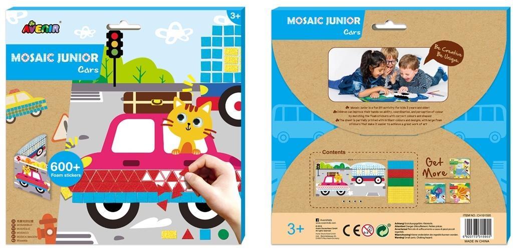 Twórz kolorowe mozaiki z samochodami! Duże piankowe naklejki ułatwiają wykonanie wspaniałego dzieła sztuki - wystarczy dopasować kolorowe naklejki do obrazka, aby uzyskać efekt, z którego można być dumnym. Dzieci mogą poprawiać swoją koordynację i postrzeganie kolorów, dopasowując naklejki piankowe do odpowiednich kolorów i kształtów. W zestawie: 2 obrazki do ozdobienia, piankowe naklejki, naklejki oczy, patyczek.