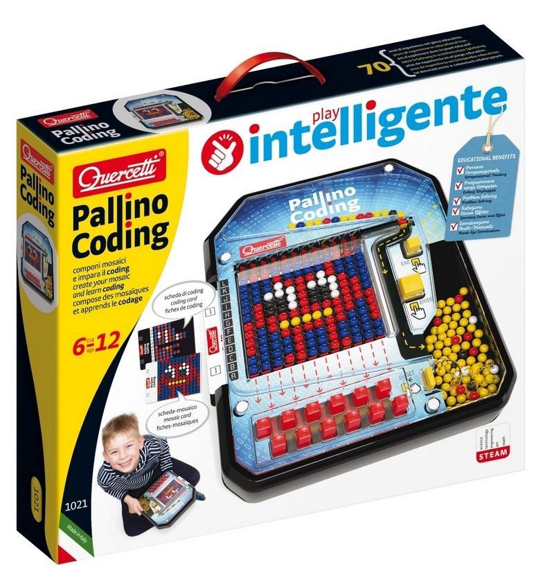 Bestsellerowy Pallino umożliwia teraz naukę kodowania! Ta popularna gra zawierająca mozaikę umożliwia wprowadzenie dzieci do myślenia komputacyjnego, czyli podobnego do komputera. Założeniem tego sposóbu myślenia jest rozbicie złożonego problemu na prostsze segmenty, które są możliwie do rozwiązania. Podczas zabawy z Pallino kodowanie odbywa się w formie "offline". Gra zawiera dwa warianty - jeden polega na odwzorowowywaniu diagramów na jednej stronie karty, drugi natomiast na tworzeniu obrazka zgodnie z instrukcjami na zakodowanej stronie karty. Podczas zabawy dzieci także ćwiczą koordynację.