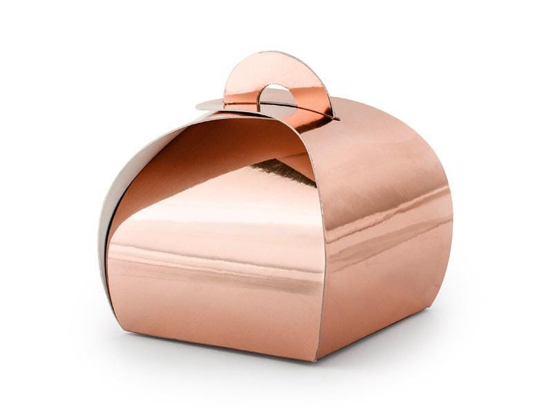 Pudełeczka wykonane z lustrzanego papieru w kolorze różowego złota, wymiary ok. 6 x 6 x 5,5 cm.(1 op. / 10 szt.)