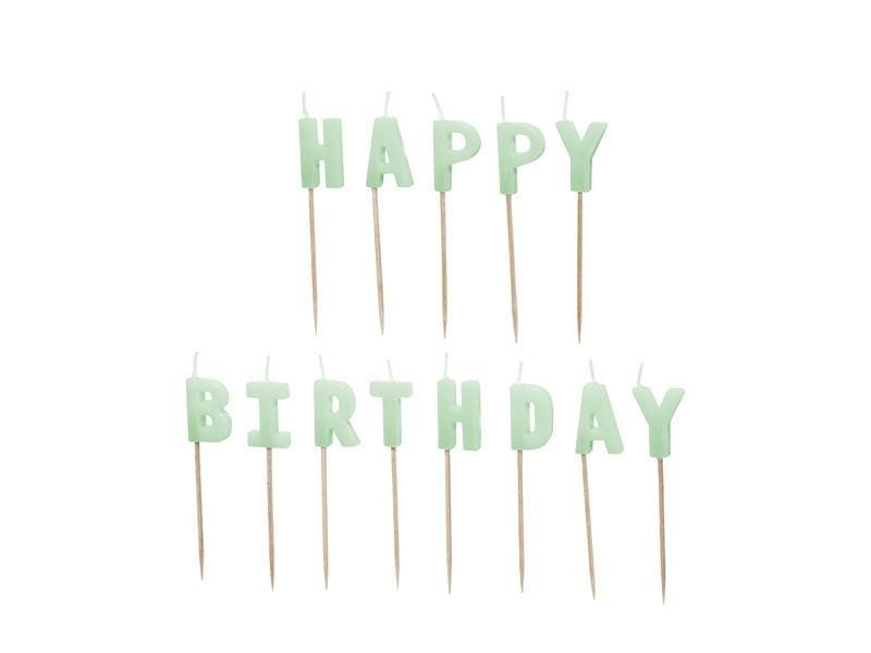 Świeczki urodzinowe Happy Birthday w kolorze jasnozielonym, wysokość ok. 2.5 cm.(1 op. / 13 szt.)