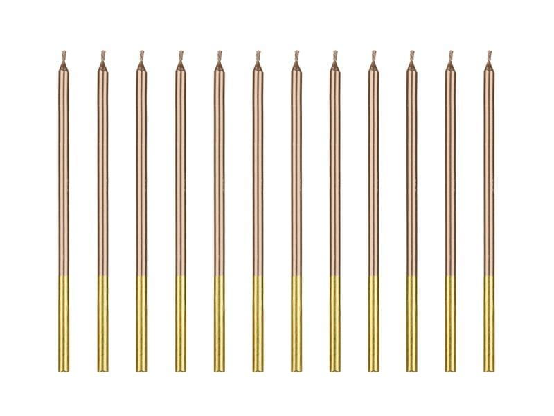 Świeczki urodzinowe gładkie w kolorze różowego złota, wysokość ok. 14 cm. Zestaw zawiera 12 świeczek.(1 op. / 12 szt.)