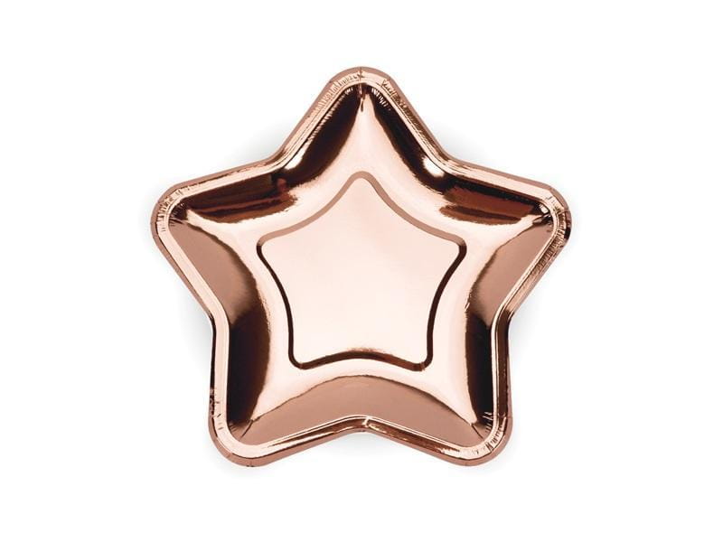 Talerzyki Gwiazdka wykonane z papieru metalizowanego w kolorze różowego złota, średnica ok. 18 cm.(1 op. / 6 szt.)