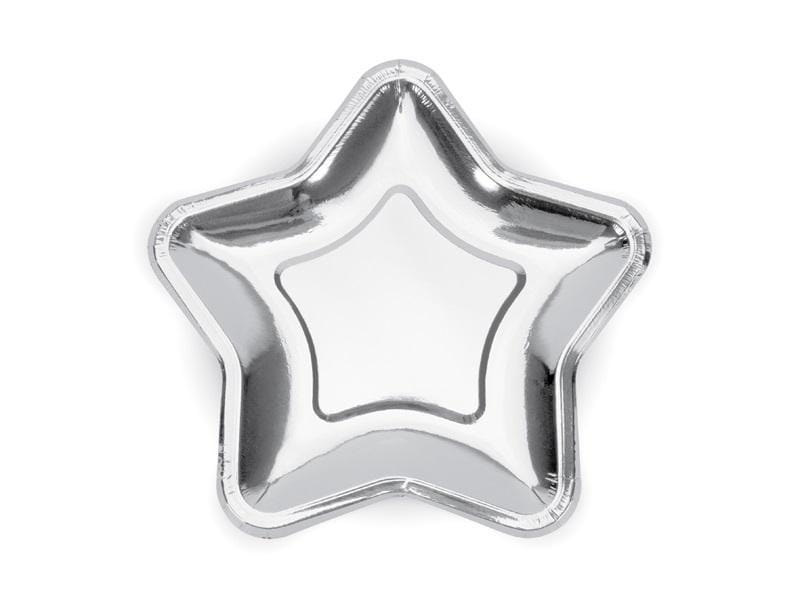 Talerzyki Gwiazdka wykonane z papieru metalizowanego w kolorze srebrnym, średnica ok. 23 cm.(1 op. / 6 szt.)
