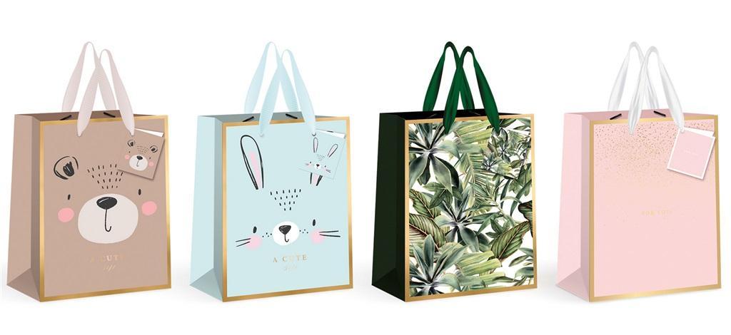 Wykonana z wysokiej jakości papieru 190 g. Eleganckie, matowe wykończenie. Wzmocniony, sztywny spód. Bilecik z miejscem na życzenia lub imię obdarowywanej osoby. Uchwyty wykonane z atłasowej wstążki. Idealna do szybkiego i efektywnego pakowania prezentów. Wymiary: 33x46x10 cm.