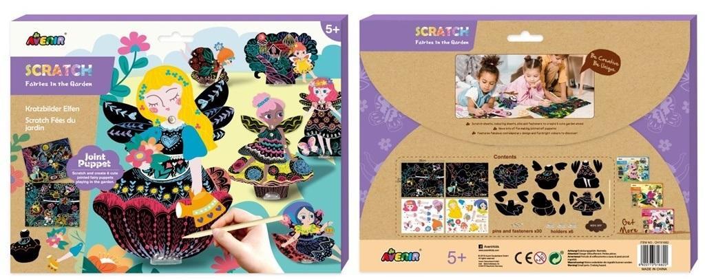 Wydrapywane laleczki to ciekawa propozycja dla kreatywnych dzieci. Prosta technika wydrapywania pozwala na stworzenie przepięknych oryginalnych laleczek przy niewielkim nakładzie pracy. Zdrap i stwórz 6 uroczych lalek-wróżek z ruchomymi elementami. W zestawie: 2 obrazki-wydrapywanki ze sceneriami, elementy do stworzenia 6 kukiełek, patyczek do wydrapywania