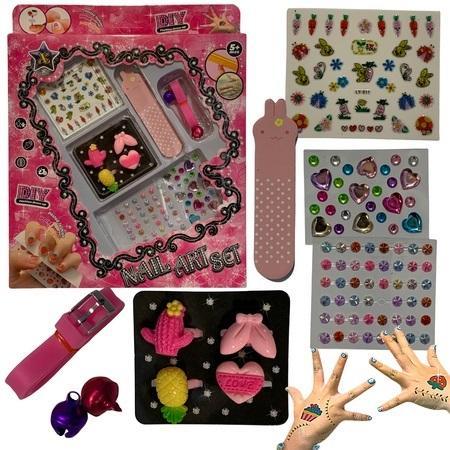 Ten zestaw urody to wspaniała i kreatywna rozrywka dla małej dziewczynki. Mała księżniczka będzie mogła samodzielnie przykleić naklejki na paznokcie lub twarz, ozdobić dłonie różnymi pierścionkami oraz wystylizować paznokcie za pomocą dołączonego delikatnego pilniczka.